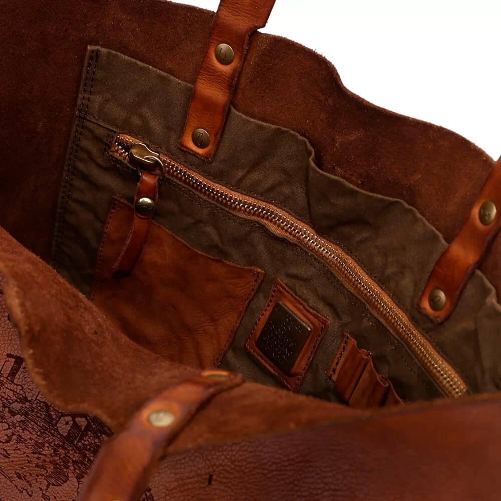 Teñimos nuestras creaciones de Campomaggi utilizando un proceso de teñido en pieza. Esta técnica única asegura que cada bolso tenga sus propios tonos y reflejos de color irrepetibles. Este proceso presenta deliberadamente manchas debido al cepillado, que no deben considerarse como defectos, sino como resultados característicos de este método, lo que hace que cada creación de Campomaggi sea única y exclusiva.