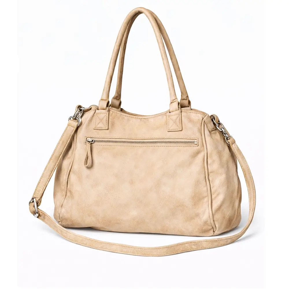 Este bolso de piel beige es la elección perfecta si buscas un accesorio funcional, moderno y de alta calidad que se adapte a cualquier ocasión.