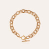 Gargantilla compuesto por una sucesión de anillas lisas y estriadas montadas a mano para formar una fina cadena bañada en oro y adornada con un cierre de pasador engastado con piedras finas.