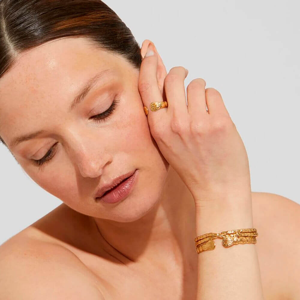 Pulsera de esclava bañada en oro y martillada a mano. Tamaño ajustable.