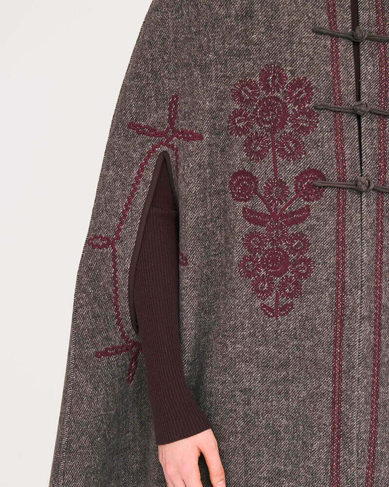 Sofisticada y abrigada, esta capa confeccionada en lana gris de alta calidad es la prenda ideal para los días fríos con estilo. Su bordado elegante aporta un detalle artesanal y distintivo que eleva el diseño, logrando una pieza única que combina comodidad y moda. Perfecta para llevar sobre vestidos, blusas o conjuntos formales y dar un aire refinado a cualquier look.