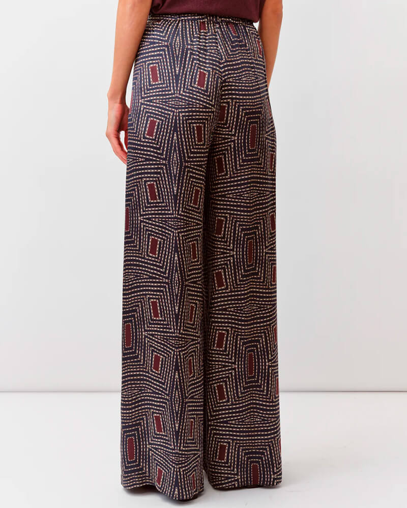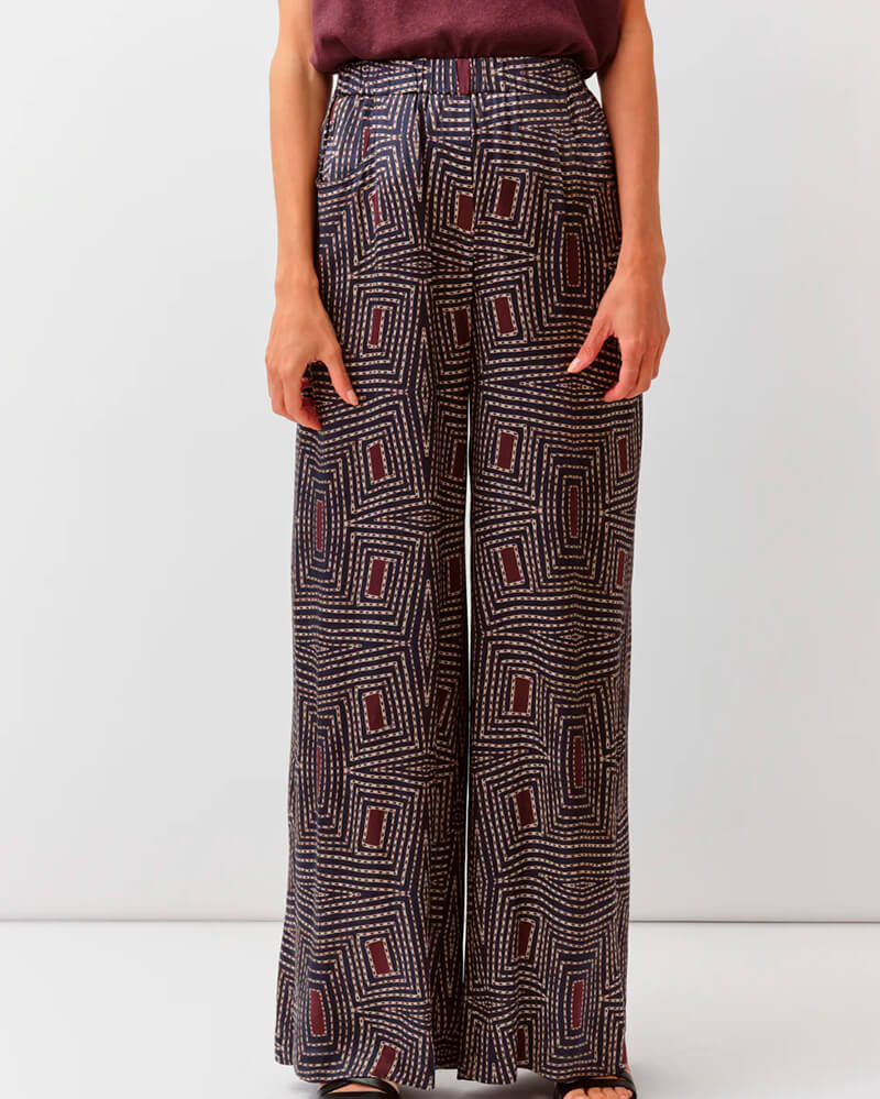 Pantalón fluido con cintura elástica, diseñado para ofrecer comodidad total y un estilo contemporáneo. Su corte amplio y pernera ancha aporta una caída suave y elegante, ideal para looks relajados con un toque sofisticado.