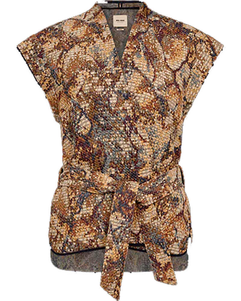 Chaleco Oz, con un estampado impactante que le da un toque atrevido. Diseñado con un cinturón a juego para acentuar la cintura, crea una silueta favorecedora. Combínalo con una blusa delicada y con cualquier prenda, desde faldas vaporosas hasta jeans de pierna ancha, para un look chic y versátil.
