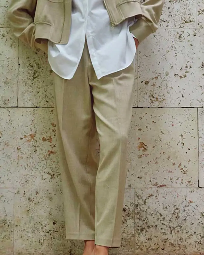 Confeccionados en una suave mezcla de poliéster reciclado, estos pantalones presentan una favorecedora cintura de media a alta y un corte boyfriend relajado con largo corto. La textura jaspeada añade un toque refinado, lo que los hace perfectos tanto para looks elegantes como informales. Combínalos con la chaqueta Flair a juego para un conjunto coordinado sin esfuerzo