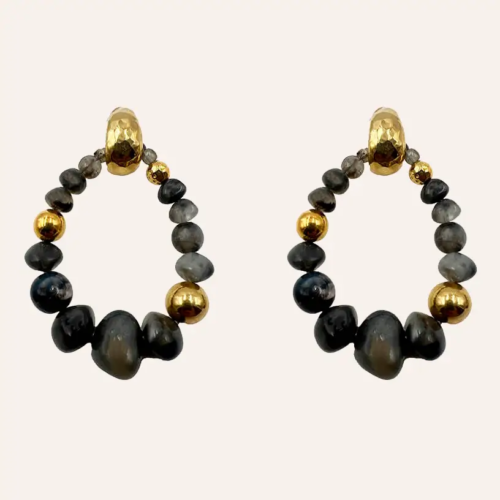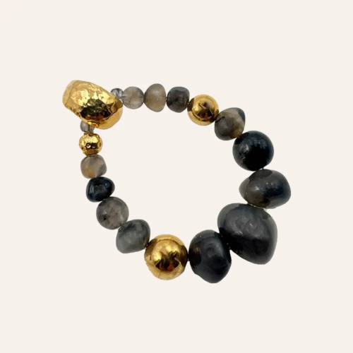 Pulsera Jaipur Piedra de Luna y Labradorita Gris