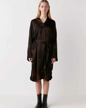 Vestido sin mangas, de línea recta, está disponible en un material de lana de alpaca con un tejido suave que deja ver la luz. Una invitación a jugar con las capas manteniendo una feminidad atrevida. Lleva un cinturón ancho. Composición: 40% poliamida 30% lana 30% alpaca